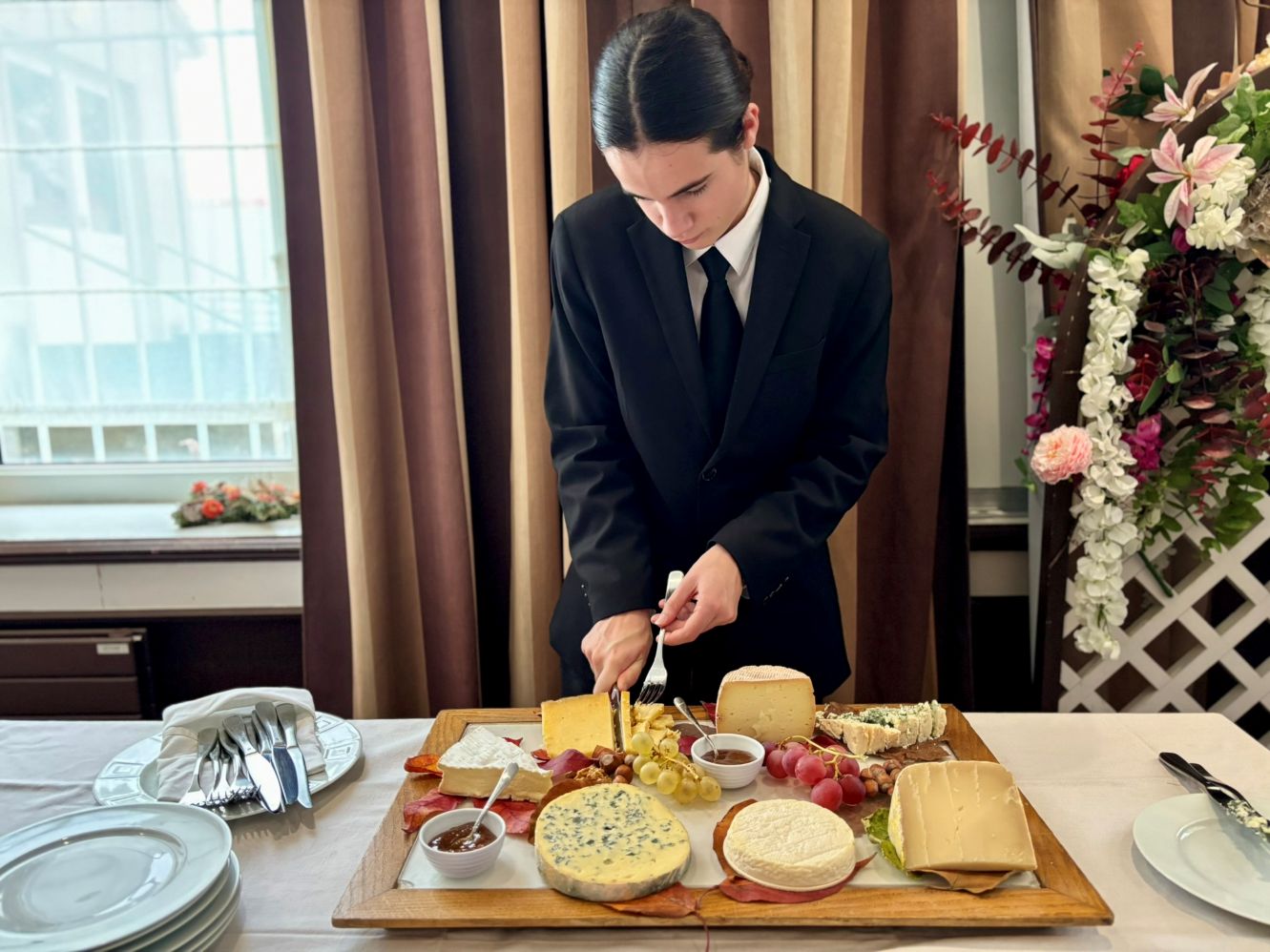 Côté service, les élèves ont été évalués sur plusieurs épreuves techniques : réalisation d’un cocktail sans alcool, découpes de saumon fumé, de côte de bœuf et de fromage, ainsi que le flambage. En cuisine, chacun devait faire preuve de créativité en réalisant une réduction salée à partir d’ingrédients tirés au sort, donnant lieu à des associations originales et maîtrisées.