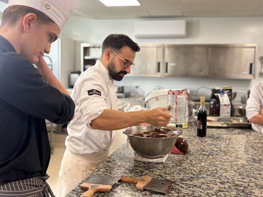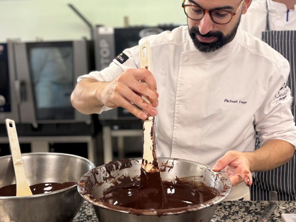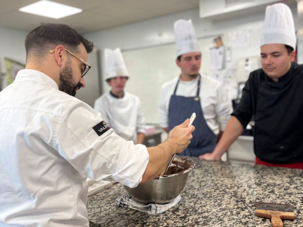 La classe de CS CDR a eu l’honneur d’accueillir ce lundi le chocolatier Michaël Faye pour une masterclass gourmande autour de la réalisation de bonbons en chocolat.